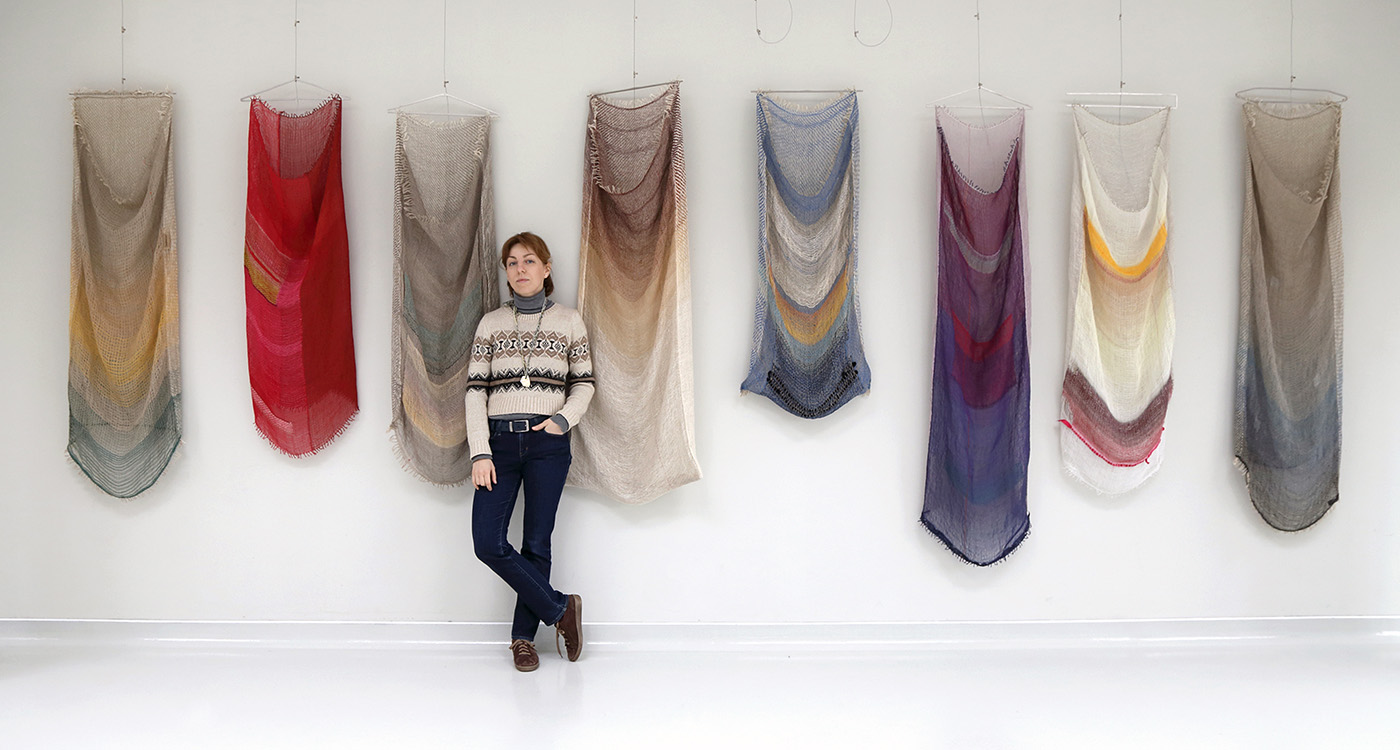 To tam Marta zobaczyła po raz pierwszy na własne oczy krosno tkackie. – Pomimo pewnej nieśmiałości w bezpośredniej relacji, od razu poruszyłyśmy kwestię projektów i tego, co chciałabym robić – mówi. Dużo rozmawiały o tym, jak te pięć miesięcy przepracować, aby korzyści odniosły obydwie strony. Marta zdawała sobie sprawę z tego, że nie przyjechała tu tylko po to, żeby się czegoś nauczyć, ale też zaoferować coś od siebie. Zaczęła więc współtworzyć kolekcję zimowych szali. Następnie przyszła pora na wspólny projekt, w ramach którego wspólnie z Heleną tkały podobrazia malarskie.