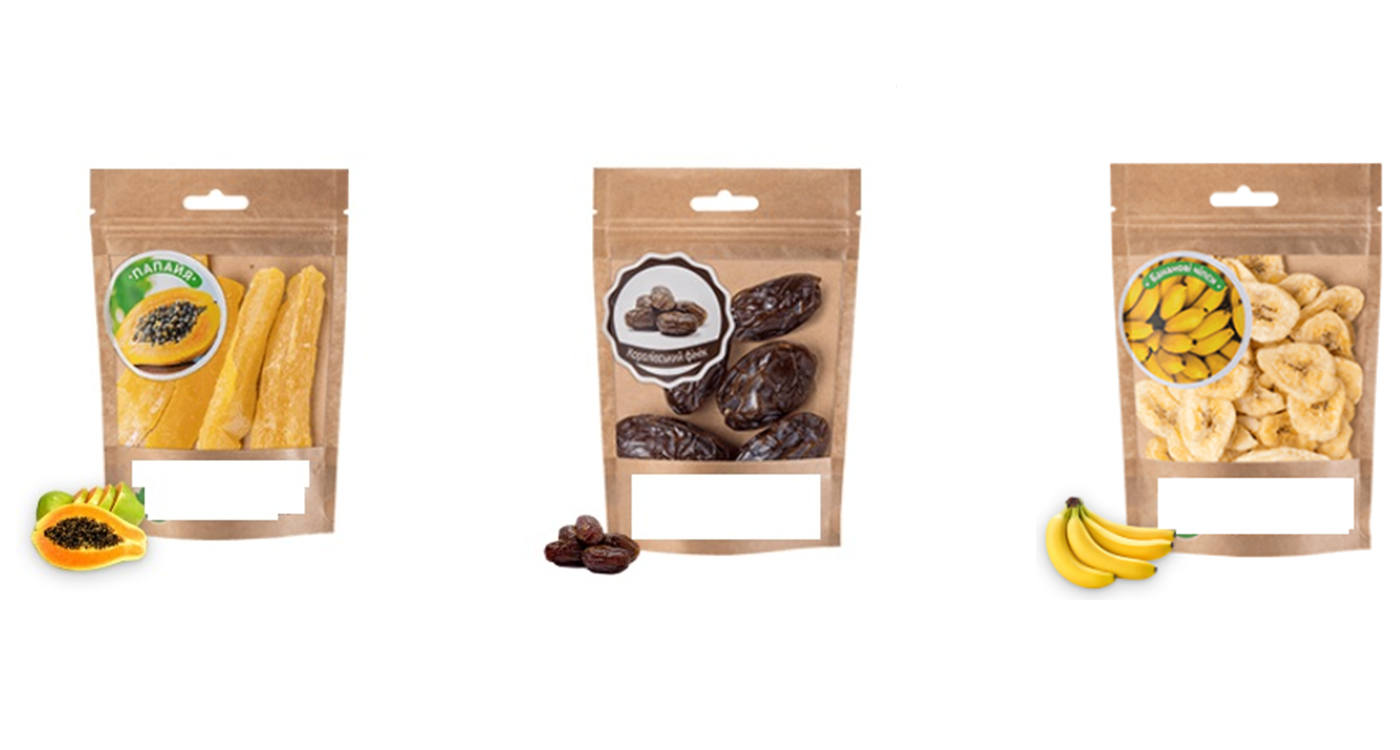 - suszone owoce egzotyczne: pierścienie ananasowe, kumkwat, kantalup, mango, papaja, kiwi, truskawka, żurawina, mieszane kostki ananasa, chipsy bananowe;