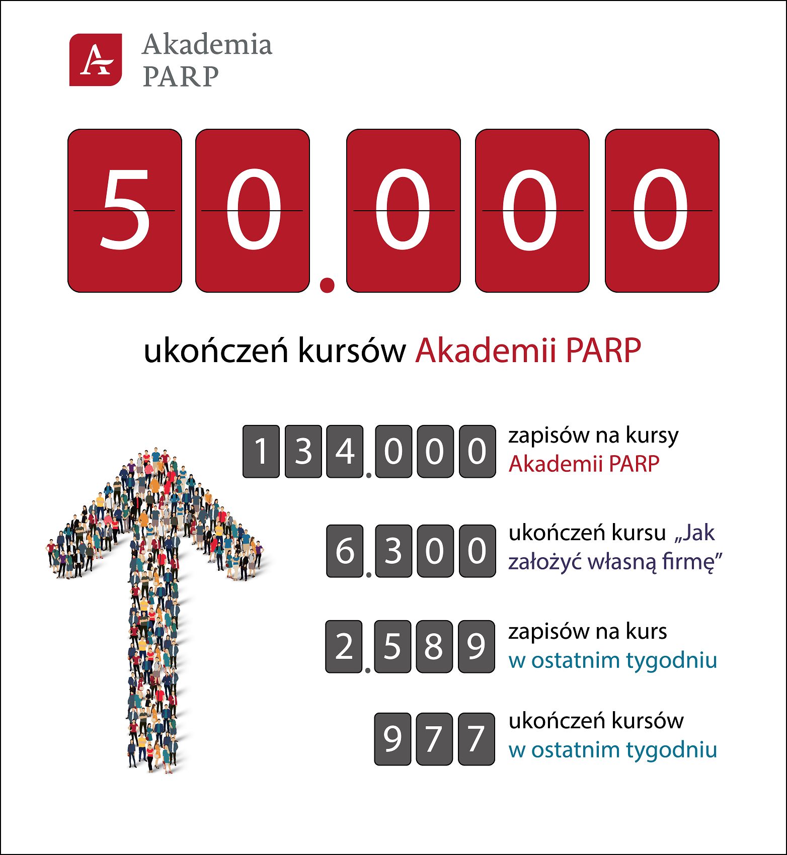 Akademia PARP może pochwalić się kolejnym osiągnięciem! Z przyjemnością informujemy, że nasza platforma edukacyjna przekroczyła granice 50 000 ukończeń kursów online.